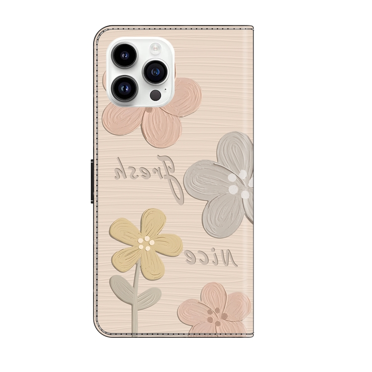Funda de Piel Pintada Fresca para iPhone 16 Pro (Flores Beige)