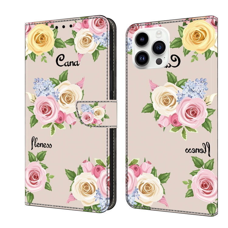 Funda de Piel Pintada Fresca para iPhone 16 Pro (Flores de Colores)