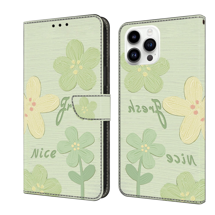 Funda de Piel Pintada para iPhone 16 Pro con Diseño Flores Frescas