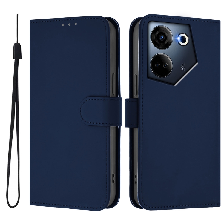 Funda de Piel para Tecno Camon 20 Pro 4G con Textura Liso y Cordón (Azul Marino)