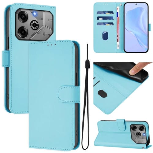 Funda de Piel para Tecno Pova 6 5G y 6 Pro 5G con Textura Liso y Cordón (Azul Cielo)