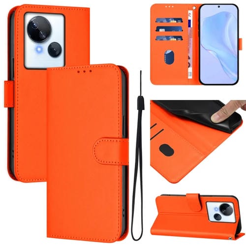 Funda de Piel para Tecno Spark 10 5G con Textura Lisa y Cordón (Naranja)