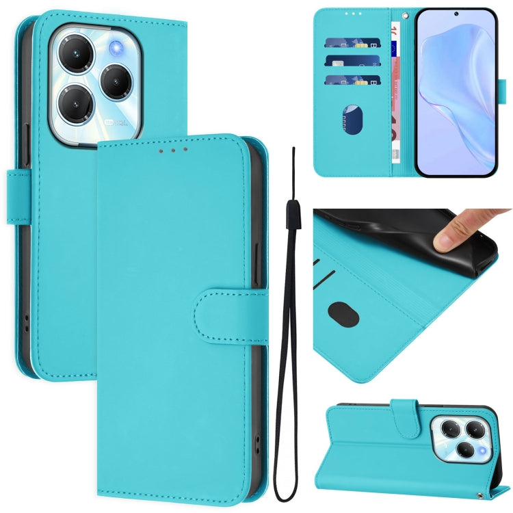 Funda de Piel Sintética con Cordón para Teléfono Infinix Hot 40 4G (Azul Lago)