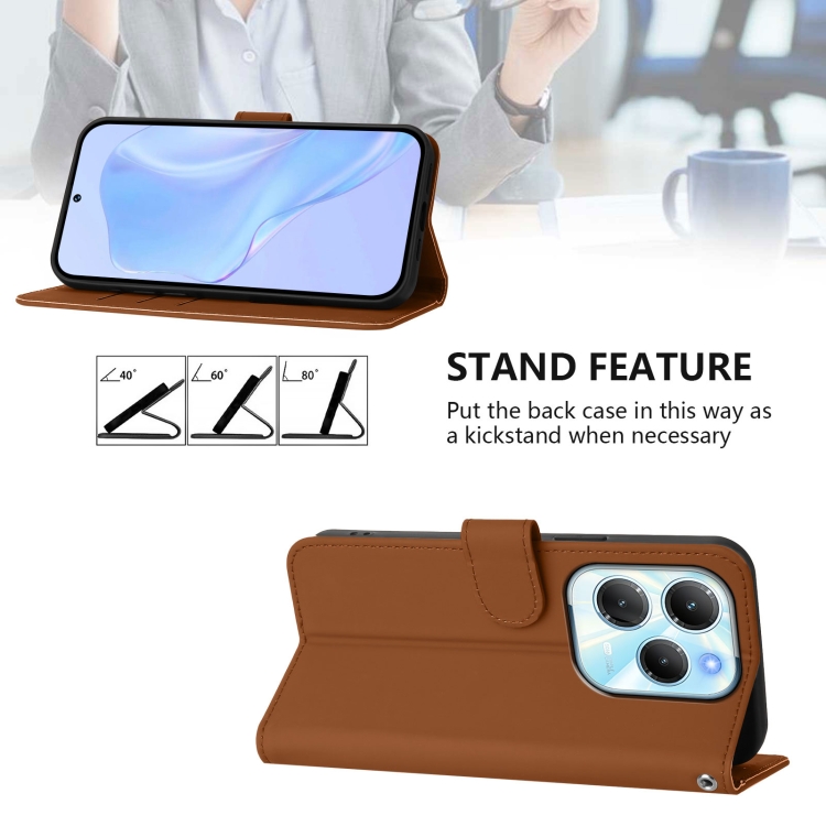 Funda de Piel Sintética con Cordón para Teléfono Infinix Hot 40 4G (Marrón)