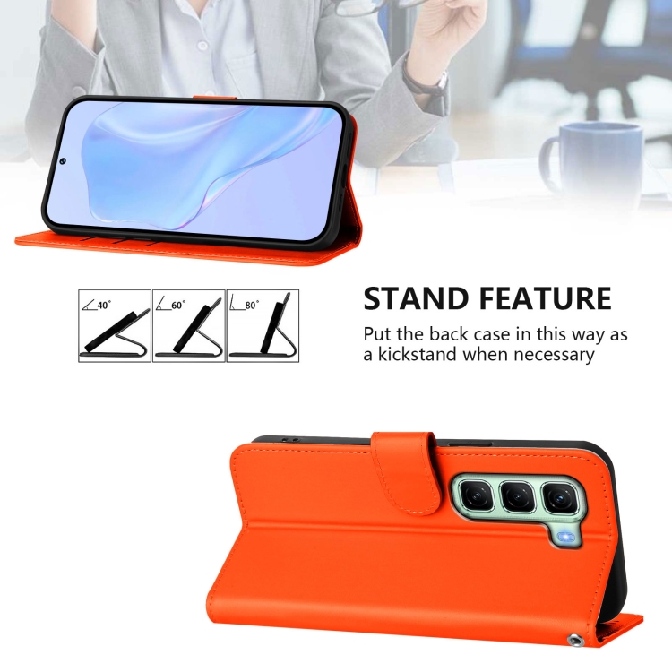 Funda de Piel Sintética con Cordón para Infinix Hot 50 4G (Naranja)