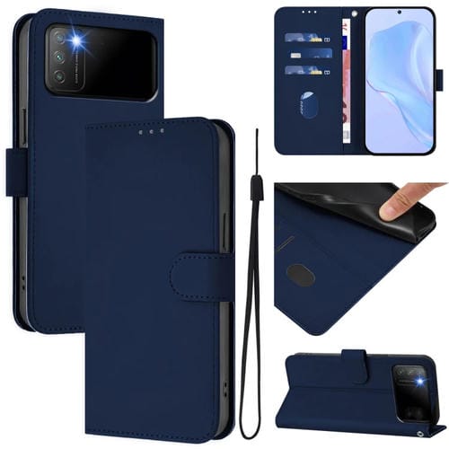 Funda de Piel Sintética con Cordón para Xiaomi Poco M3 (Azul Marino)