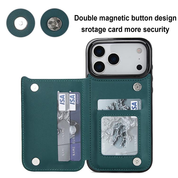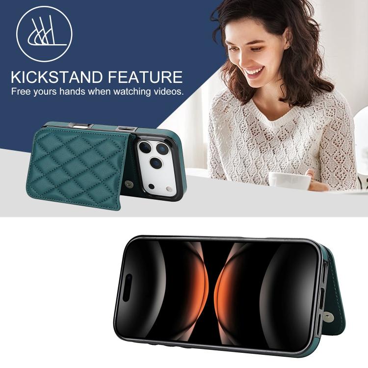 Funda de piel sintética con doble hebilla rómbica para iPhone 17 Pro Max (verde)