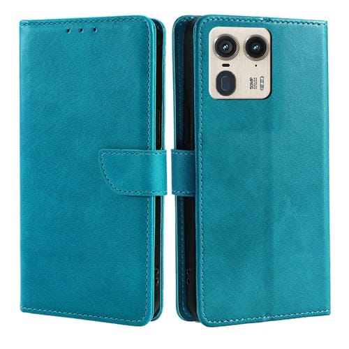 Funda de Piel Sintética con Textura de Becerro y Hebilla para Motorola Edge 50 Ultra (Azul Claro)