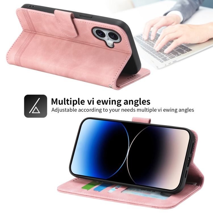Funda de Piel Sintética y TPU Dierfeng Dream Line para iPhone 16 (Rosa)