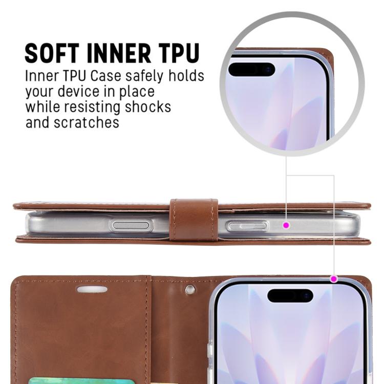 Funda de piel texturizada Crazy Horse GOOSPERY BLUE MOON para iPhone 17 (marrón)