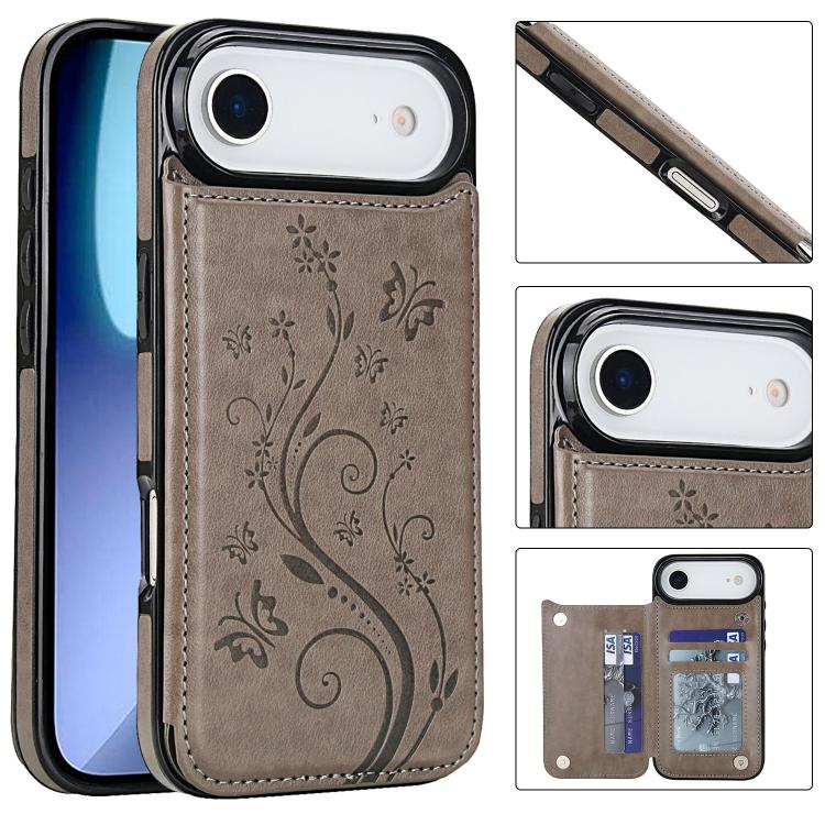 Funda de PU con doble hebilla y estampado de mariposa para iPhone Air (gris)
