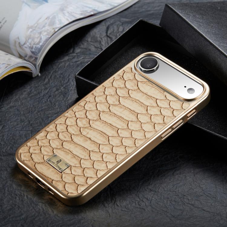 Funda de PU galvanizada con textura de pitón Fierre Shann para iPhone Air (blanca)