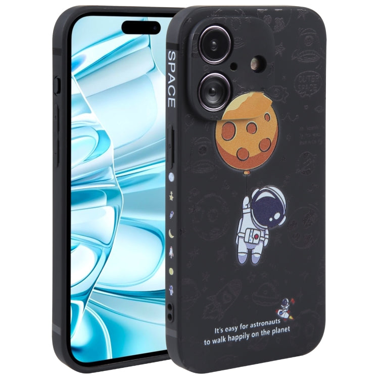 Funda de Silicona iPhone 16 Borde Recto Diseño Astronauta (Negro)