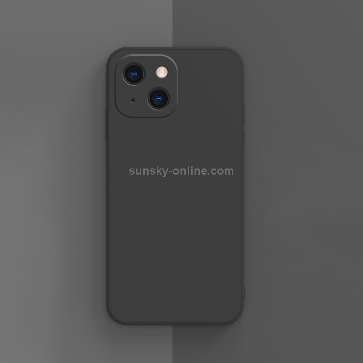 Funda silicona líquida iPhone 13 Mini borde recto cubo color sólido (Negro)