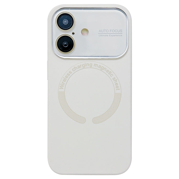 Funda de Silicona Magsafe para iPhone 16 con Lente de Vidrio Acrílico de Ventana Grande (Blanco Antiguo)