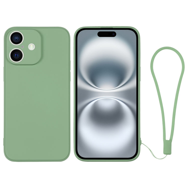 Funda de Silicona para iPhone 16 con Correa para la Muñeca (Verde Matcha)