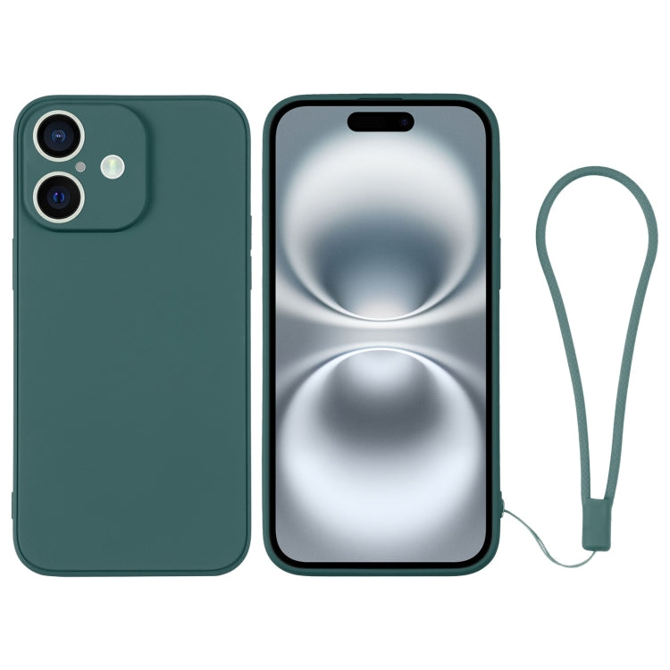 Funda de Silicona para iPhone 16 con Correa para la Muñeca (Verde Oscuro)