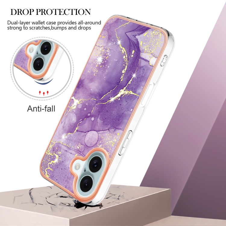 Funda de Teléfono TPU Imd Doble Cara Mármol Galvanizado iPhone 16 Plus (Púrpura)