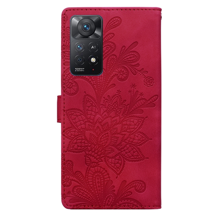 Funda de Teléfono con Hebilla Magnética y Encaje Floral En Relieve para Redmi Note 11 Pro 5G (Rojo)