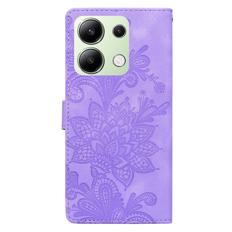 Funda de Teléfono con Hebilla Magnética y Encaje Floral En Relieve para Redmi Note 13 4G (Púrpura)