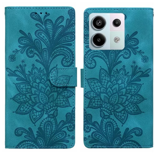 Funda de Teléfono con Hebilla Magnética y Encaje Floral En Relieve para Redmi Note 13 Pro 4G (Verde)