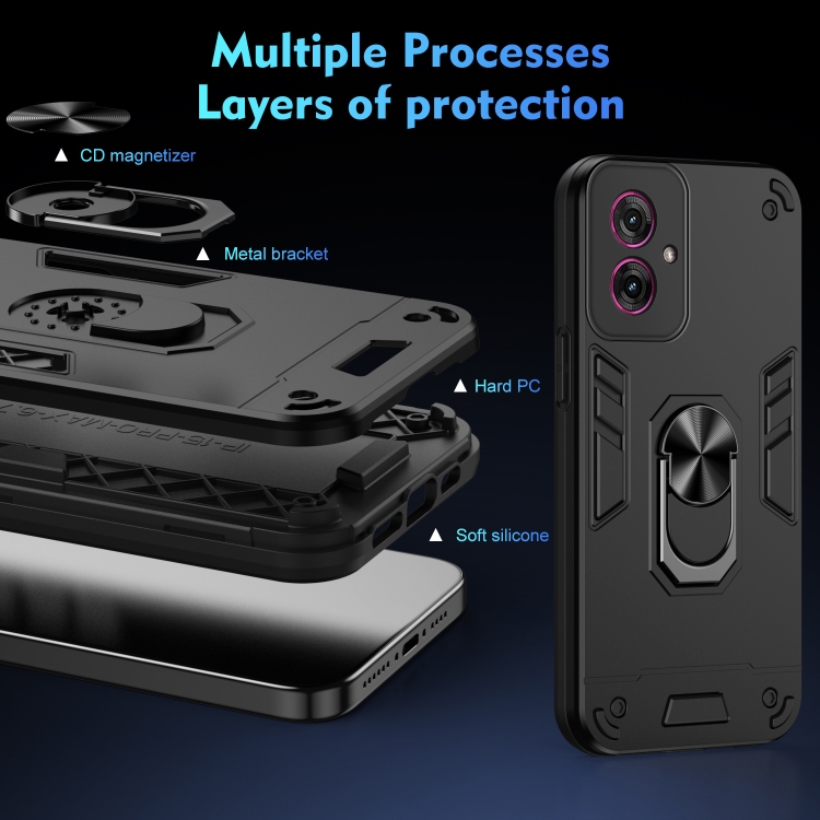 Funda de Teléfono Motorola Moto G55 con Soporte de Anillo Metal a Prueba de Golpes (Negro)