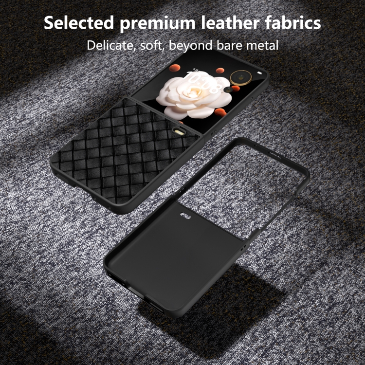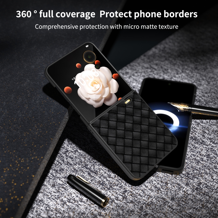 Funda de Teléfono Honor Magic V Textura Tejida PU Marco Abatible (Negra)