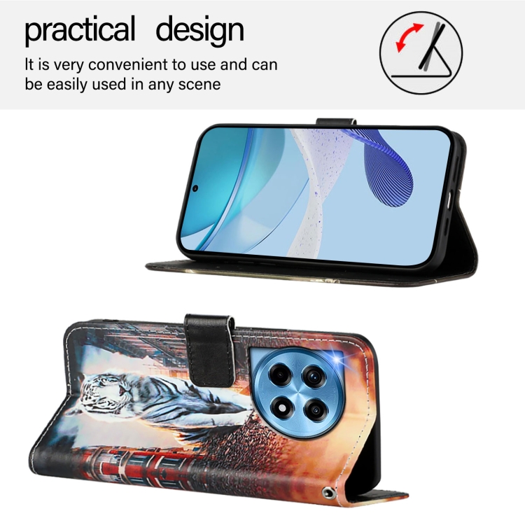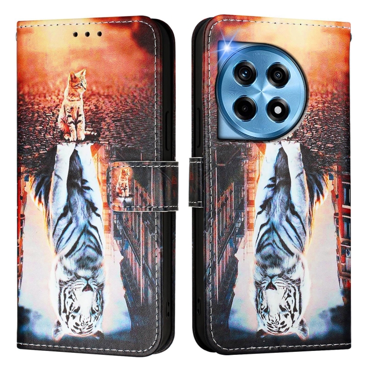 Funda de Cuero para OnePlus 12R 5G Global con Patrón de Gatos y Tigres (Colores)