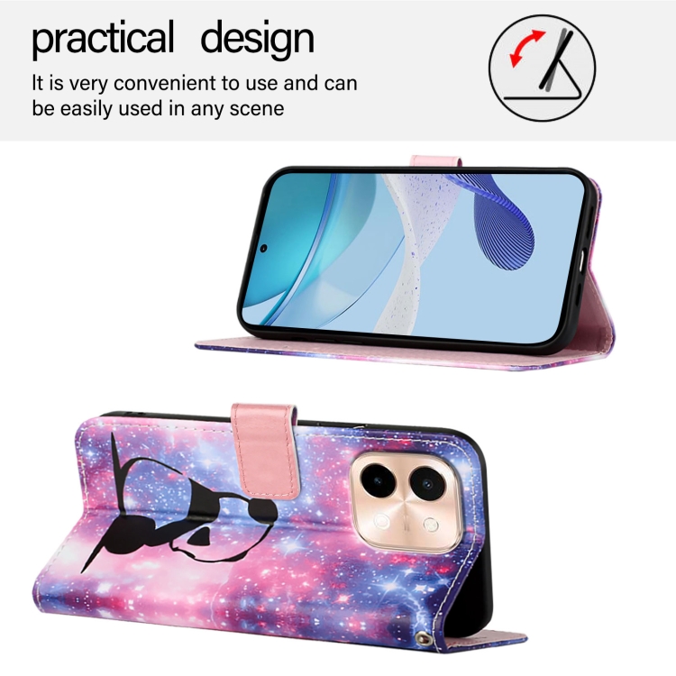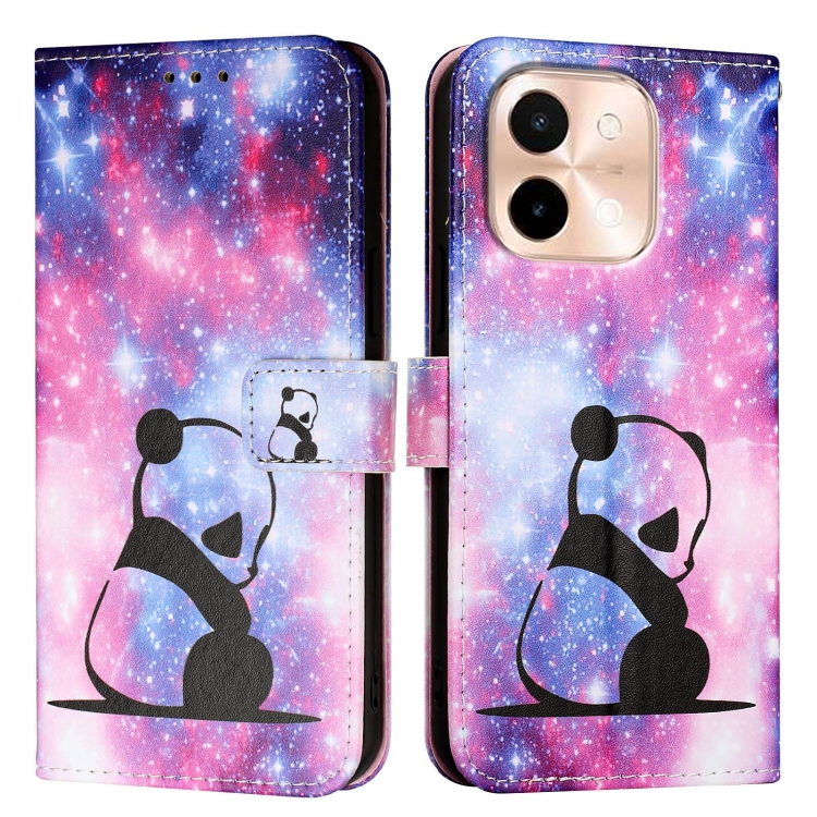 Funda de Teléfono de Cuero con Patrón de Dibujo de Colores y Tejido Liso para Vivo Y28 4G (Panda Bebé)