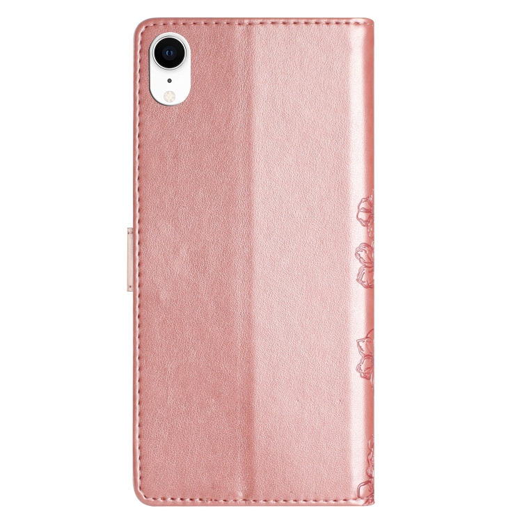 Funda de teléfono PU iPhone Xs/X relieve Mariposa flor de Cerezo (Oro Rosa)