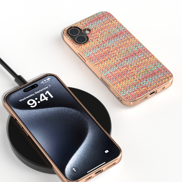Funda teléfono PU textura celosía marco galvanizado iPhone 16 Plus (Mandarina)