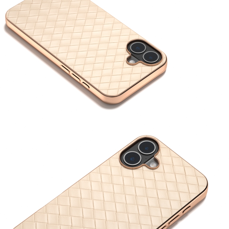 Funda de Teléfono Pu Textura Tejida Marco Galvanizado iPhone 16 Plus (Beige)
