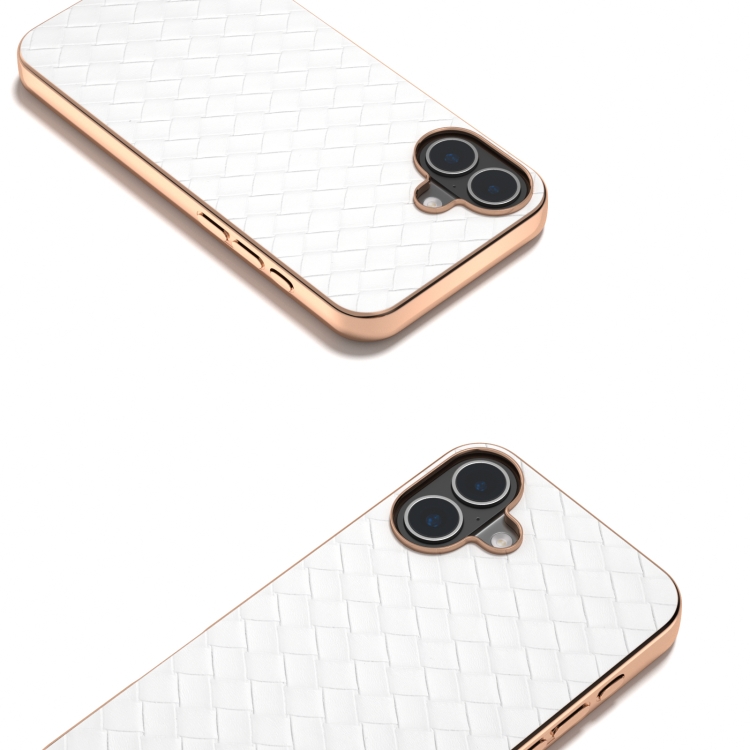 Funda de Teléfono PU con Textura Tejida y Marco Galvanizado para iPhone 16 Plus (Blanca)