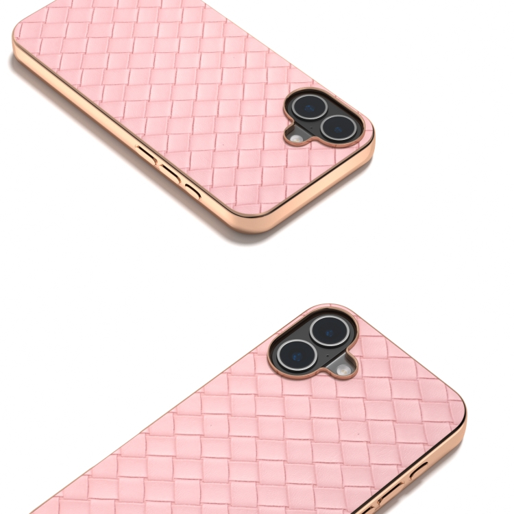 Funda de Teléfono Pu Textura Tejida Marco Galvanizado iPhone 16 Plus (Rosa)