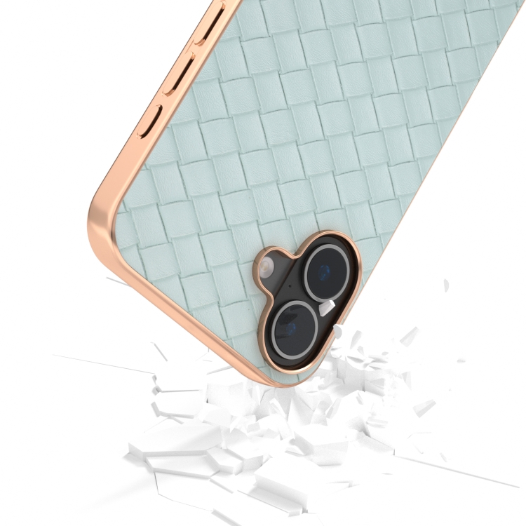 Funda de Teléfono PU con Textura Tejida y Marco Galvanizado para iPhone 16 Plus (Verde Claro)