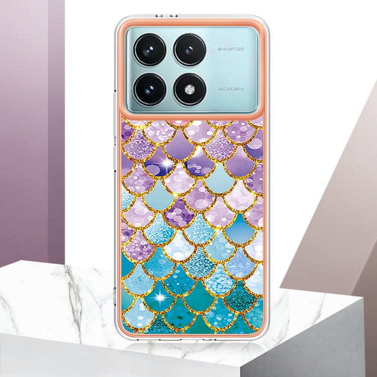 Funda de Teléfono de TPU con Galvanoplastia Imd para Xiaomi Poco F6 Pro 5G (Escamas de Colores)