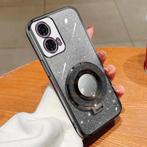 Funda TPU con Soporte Redondo y Purpurina Degradada para Motorola Moto G24 (Negro)
