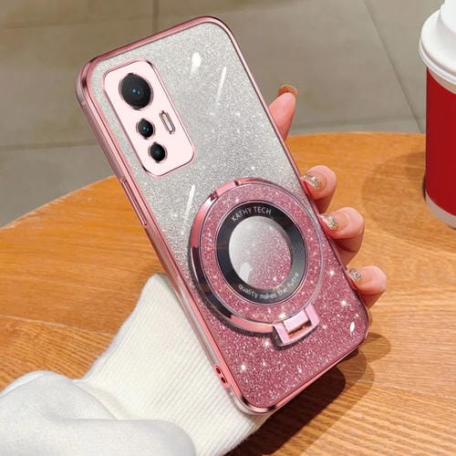 Funda de Teléfono de TPU con Soporte Redondo y Purpurina Degradada Plateada para Xiaomi 12 Lite (Rosa)