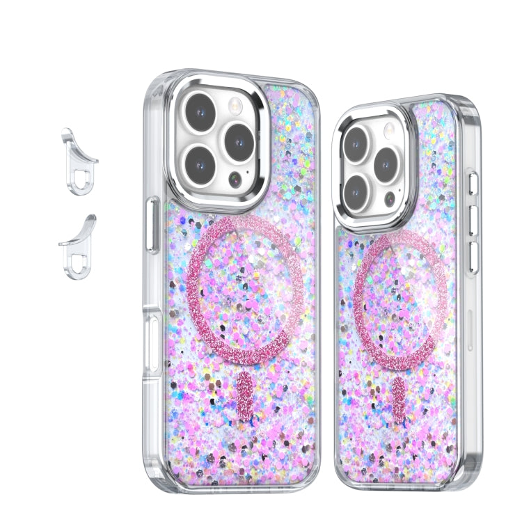 Funda de Teléfono TPU Magnética Magsafe con Purpurina Epoxi para iPhone 16 Pro (Rosa)