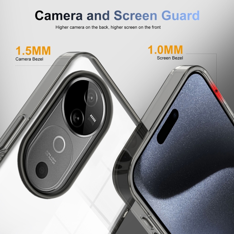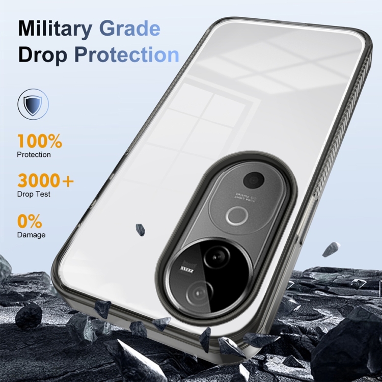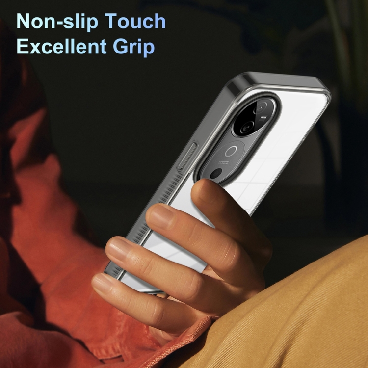 Funda de Teléfono Híbrida de TPU Acrílica Transparente Antideslizante para Vivo V40 5G (Negra)