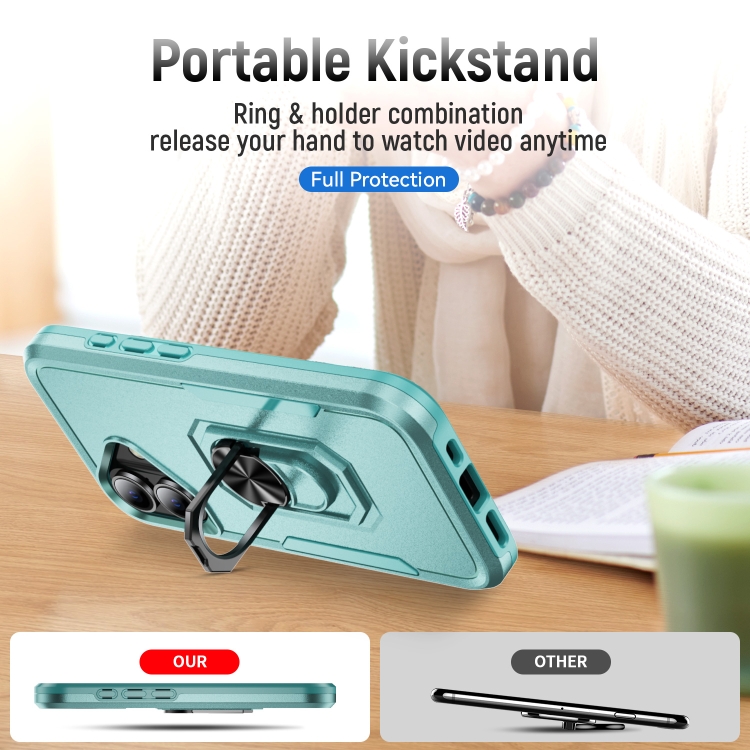 Funda teléfono Pioneer Armor iPhone 16 Plus resistente PC y TPU con soporte (Verde)
