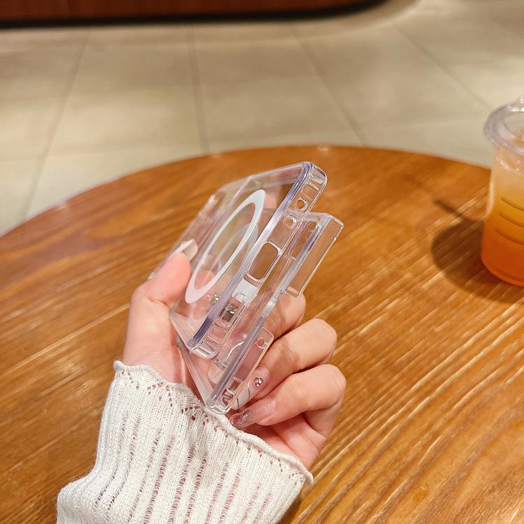 Funda de TPU acrílica transparente magnética MagSafe para Samsung Galaxy Z Flip7 5G con gran orificio para cámara (transparente)