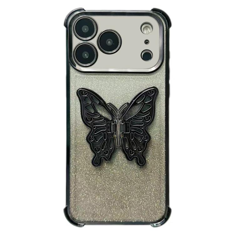 Funda de TPU con diseño de mariposa 3D brillante y galvanizada para iPhone 17 Pro, a prueba de golpes y con cuatro esquinas (negro degradado)