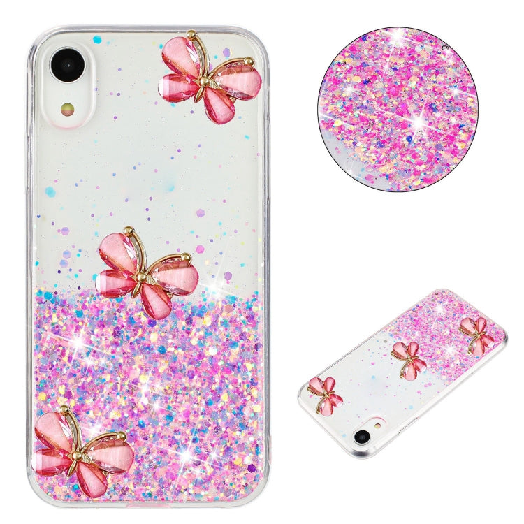 Funda TPU iPhone Xr Diseño Mariposa Purpurina Cielo Estrellado Luminoso (Rosa)