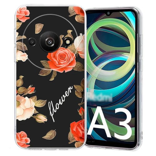 Funda de TPU con Patrón de Pintura Colorida para Redmi A3 (Flores En Negro)
