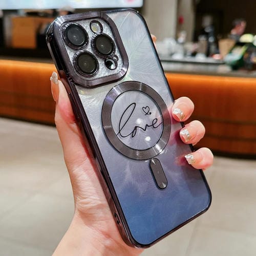Funda TPU Purpurina Degradado Plumas Amor para iPhone 12 Pro (Negra)