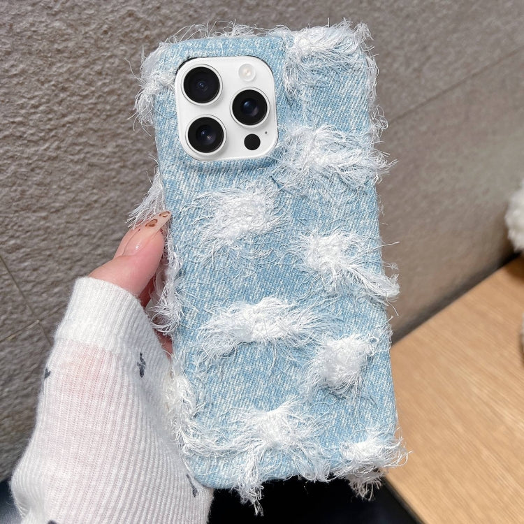Funda TPU Felpa iPhone 16 Pro Max Tejido a Rayas (Azul Claro)