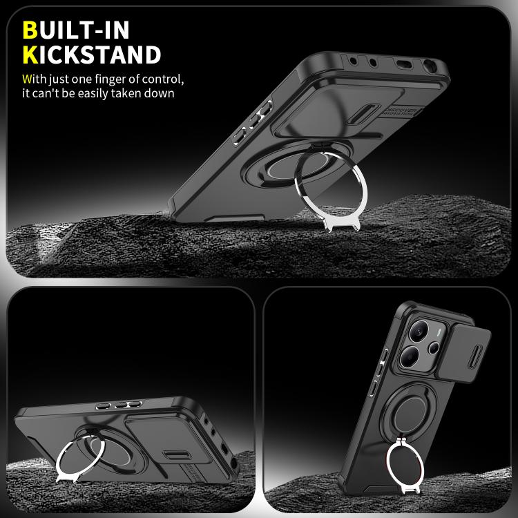 Funda deslizante con anillo de soporte para Redmi Note 14 4G (163,25 mm, naranja)