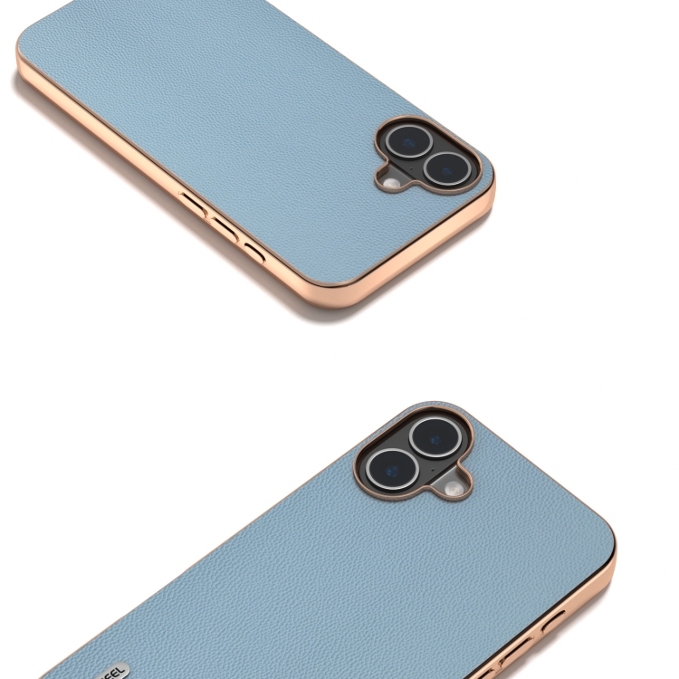 Funda de Cuero Genuino Abeel para iPhone 16 Plus con Marco Galvanizado (Azul Cielo)