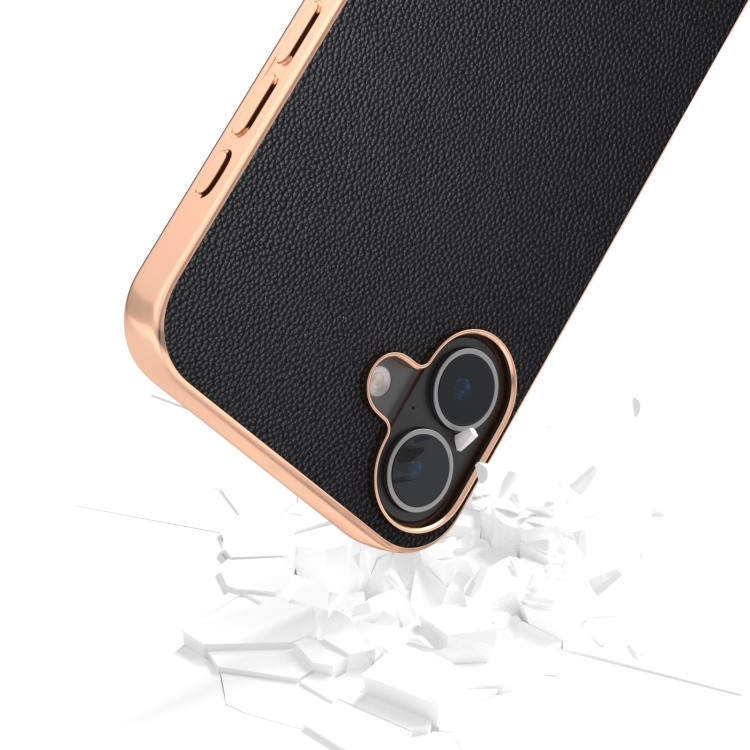 Funda de Cuero Genuino Abeel para iPhone 16 Plus con Marco Galvanizado (Negro)